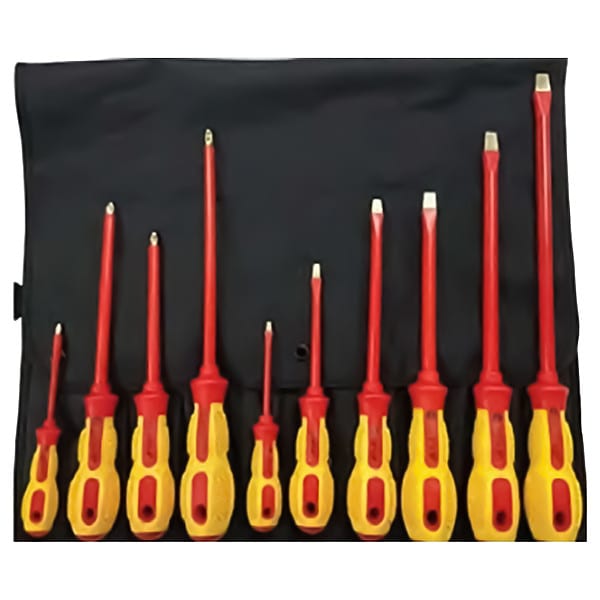 Screwdriver Set, #1, #2, #3, #4, 1/4 in, 1/8 in, 3/16 in, 3/8 in, 5/16 in, Phillips, Slotted, Cushion, Number of Pieces 10, Yes, Non-Sparking Yes, Includes #1 x 3 Phillips Screwdriver, #2 x 4 Phillips Screwdriver, #3 x 6 Phillips Screwdriver, #4 x 6 Phillips Screwdriver, 1/4 in x 6 in Slotted Screwdriver, 1/8 in x 3 in Slotted Screwdriver, 3/16 in x 4 in Slotted Screwdriver, 3/8 in x 12 in Slotted Screwdriver, 3/8 in x 8 in Slotted Screwdriver, 5/16 in x 6 in Slotted Screwdriver