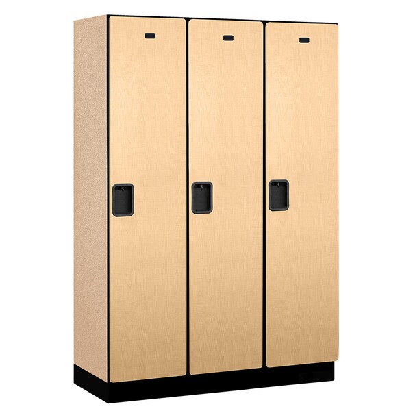 1 Tier Designer Locker, 54"Wx76"Hx18"D, 3 Door, Maple