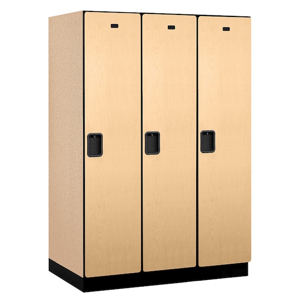 1 Tier Designer Locker, 54"Wx76"Hx24"D, 3 Door, Maple