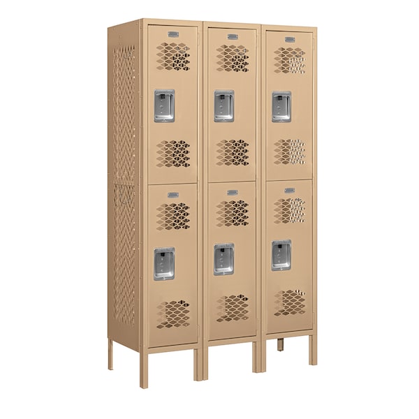 2 Tier Vented Locker, 36"Wx66"Hx15"D, 6 Door, Tan, Unassembled