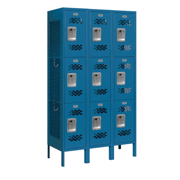 3 Tier Vented Locker, 36"Wx66"Hx15"D, 9 Door, Blue, Unassembled
