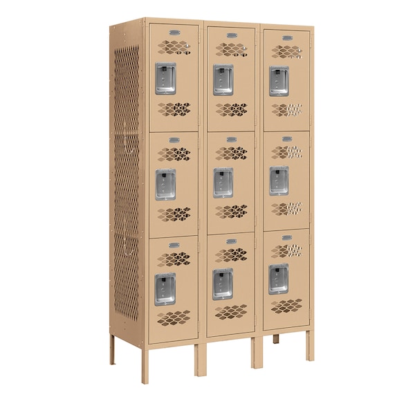 3 Tier Vented Locker, 36"Wx66"Hx15"D, 9 Door, Tan, Unassembled