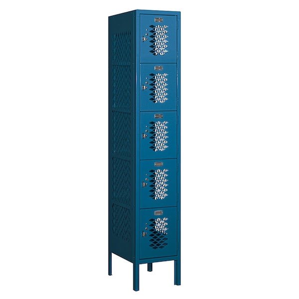 5 Tier Box Vented Locker, 12"Wx66"Hx15"D, 5 Door, Blue, Unassembled