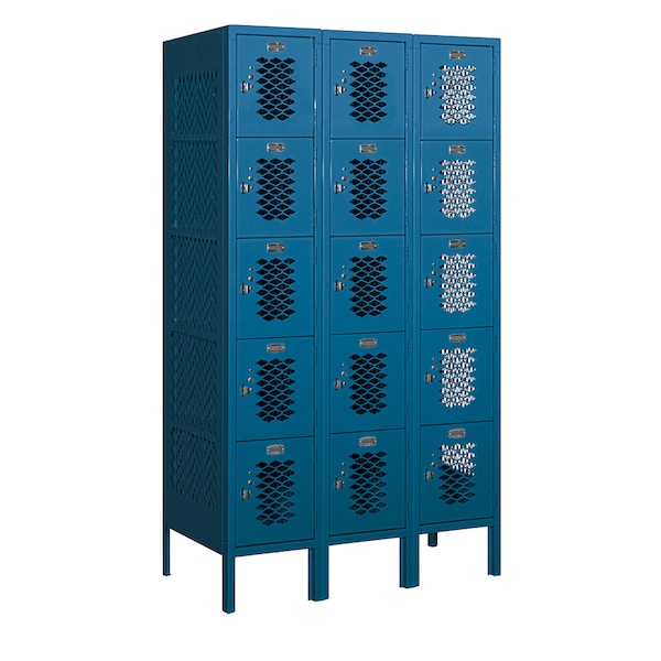 5 Tier Box Vented Locker, 36"Wx66"Hx18"D, 15 Door, Blue, Unassembled