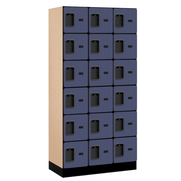 Box Locker, 36" W, 18" D, 76" H, (3) Wide, (18) Openings, Blue