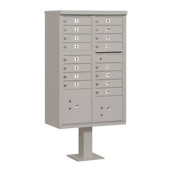 Cluster Box Unit, Standard, Number of Doors 18, Color Gray, Height 62-3/4 In., Depth 18 In., Width 30-1/2 In., Box Material Aluminum, Loading Front, Mounting Pedestal, Orientation Vertical, Cabinet Capacity 30-1/2 In. W x 62-3/4 In. H x 18 In. D, Slot Capacity 11-3/4 In. W x 3/4 In. H, Door Material Aluminum, Finish Powder Coated, For Use With Apartments, Commercial Buildings, Residential Developments, Indoor and Outdoor Facilities, Post Height 14-1/2 In., Post Material Aluminum