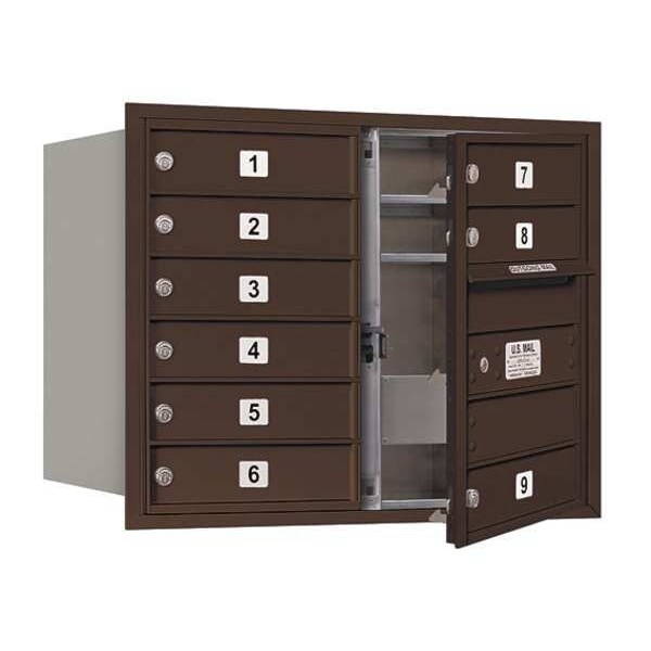 Horizontal Mailbox, Private, Number of Doors 9, Color Bronze, Height 23-1/2 In., Depth 17 In., Width 31-1/8 In., Box Material Aluminum, Loading Front, Mounting Recessed, Orientation Horizontal, Slot Capacity 10-3/4 In. W x 3/4 In. H, Door Material Aluminum, Finish Powder Coated, For Use With Mfr. No. 3906D-BRZ, 3806D-BRZ, Net Weight 90 lb., Standards ISO 9001: 2008