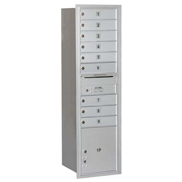 Standard Mailbox, 4C, Horizontal, 9 Number of Doors, Height 56 3/4 In, Depth 17 In, Width 16 3/8 In, Front Loading, Recessed Mounting, Door Material Aluminum, Powder Coated Finish, Net Weight 85 Lb, USPS Standards, Includes (1) 15 1/2 In Height Parcel Lockers