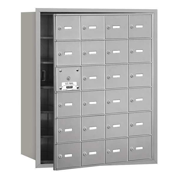 Horizontal Mailbox, USPS, Number of Doors 24, Color Aluminum, Height 35-1/4 In., Depth 16-1/2 In., Width 29-1/4 In., Box Material Aluminum, Loading Front, Mounting Recessed, Orientation Horizontal, Door Material Aluminum, Finish Powder Coated, Net Weight 75 lb., Standards ISO 9001: 2008