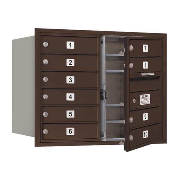 Horizontal Mailbox, USPS, Number of Doors 10, Color Bronze, Height 23-1/2 In., Depth 17 In., Width 31-1/8 In., Box Material Aluminum, Loading Front, Mounting Recessed, Orientation Horizontal, Slot Capacity 10-3/4 In. W x 3/4 In. H, Door Material Aluminum, Finish Powder Coated, For Use With Mfr. No. 3906D-BRZ, 3806D-BRZ, Net Weight 90 lb., Standards ISO 9001: 2008