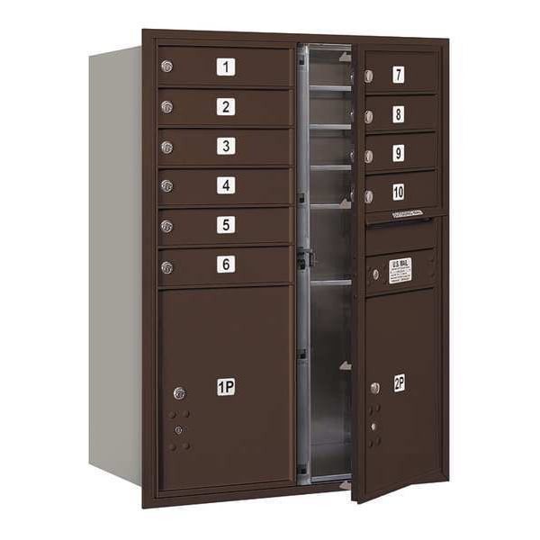 Horizontal Mailbox, USPS, Number of Doors 12, Color Bronze, Height 41 In., Depth 17 In., Width 31-1/8 In., Box Material Aluminum, Loading Front, Mounting Recessed, Orientation Horizontal, Slot Capacity 10-3/4 In. W x 3/4 In. H, Door Material Aluminum, Finish Powder Coated, For Use With Mfr. No. 3911D-BRZ, 3811D-BRZ, Net Weight 140 lb., Standards ISO 9001: 2008