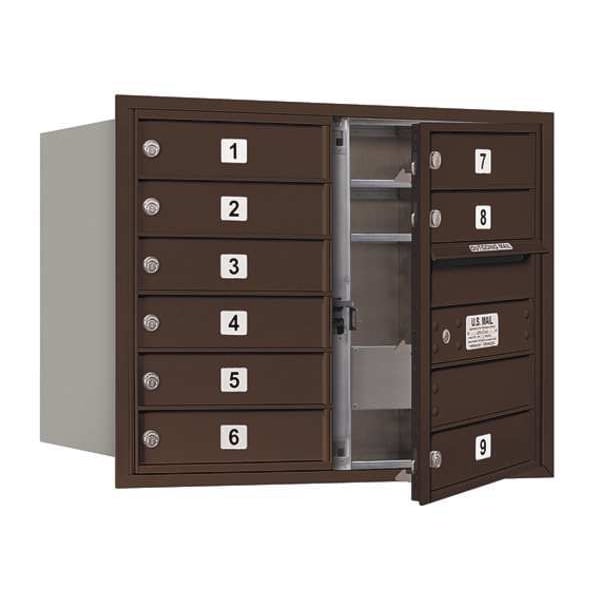 Mailbox, Bronze, Powder Coated, 9 Doors, Recessed, USPS