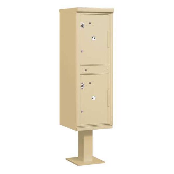 Outdoor Parcel Locker, USPS Access, Number of Doors 2, Color Sandstone, Height 62-3/4 In., Depth 18 In., Width 16 In., Box Material Aluminum, Loading Front, Mounting Pedestal, Orientation Vertical, Door Material Aluminum, Finish Powder Coated, Post Height 14-1/2 In., Post Material Aluminum, Post Thickness 12 In., Net Weight 100 lb., Standards ISO 9001: 2008, Includes Pedestal