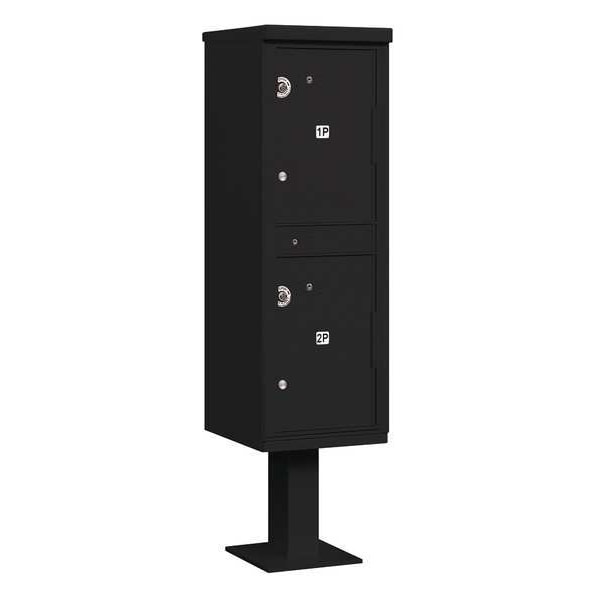Outdoor Parcel Locker, USPS Access, Number of Doors 2, Color Black, Height 62-3/4 In., Depth 18 In., Width 16 In., Box Material Aluminum, Loading Front, Mounting Pedestal, Orientation Vertical, Door Material Aluminum, Finish Powder Coated, Post Height 14-1/2 In., Post Material Aluminum, Post Thickness 12 In., Net Weight 100 lb., Standards ISO 9001: 2008, Includes Pedestal