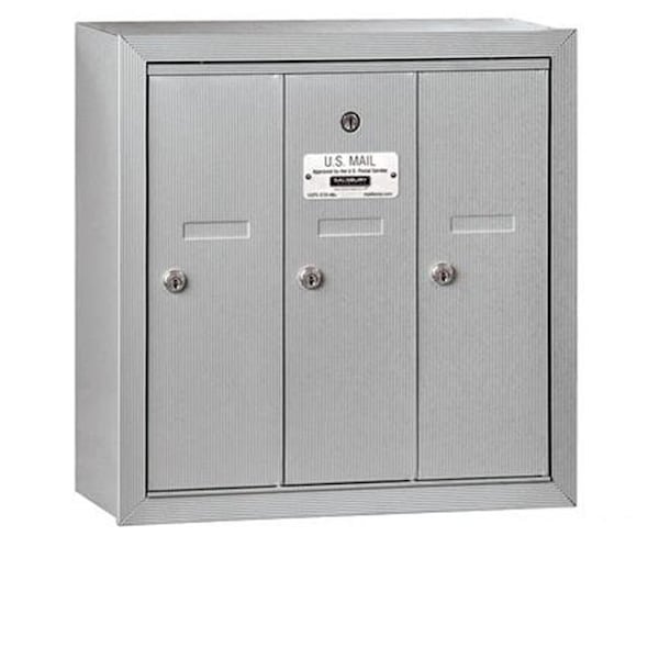 Salsbury Industries 3503ASP Vertical Mailbox - 3 Doors - Aluminum - Surface Mounted - Private Access