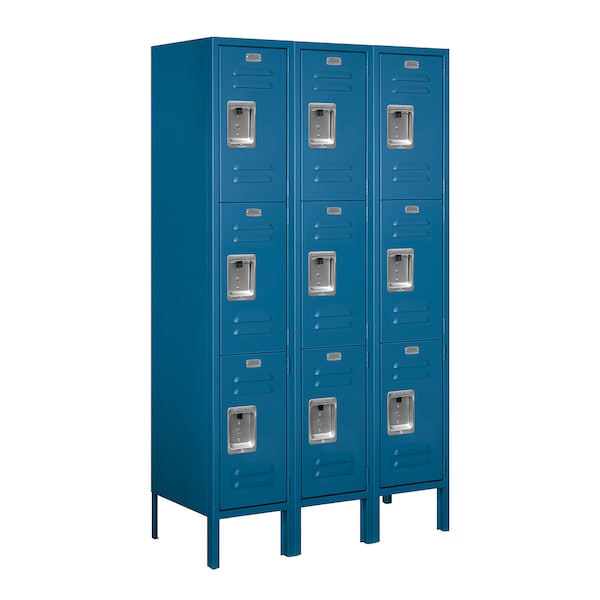 Wardrobe Locker, 36" W, 15" D, 66" H, (3) Wide, (9) Openings, Blue