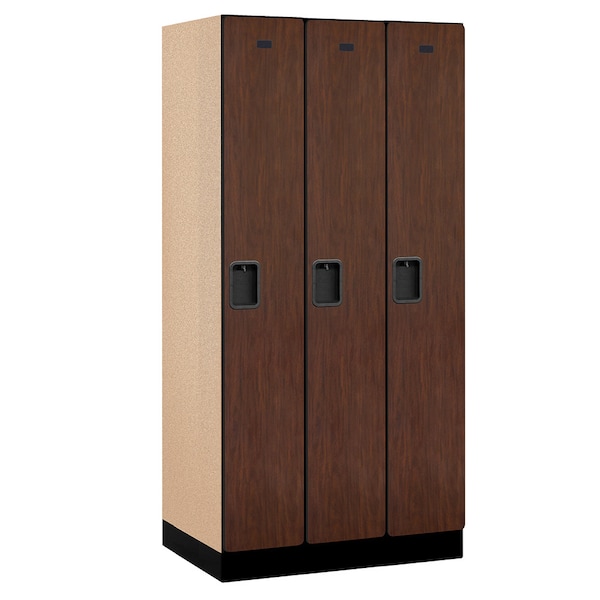 Wardrobe Locker, 36" W, 21" D, 76" H, (3) Wide, (3) Openings, Mahogany