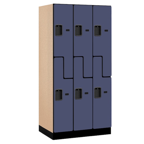 Wardrobe Locker, 36" W, 21" D, 76" H, (3) Wide, (6) Openings, Blue