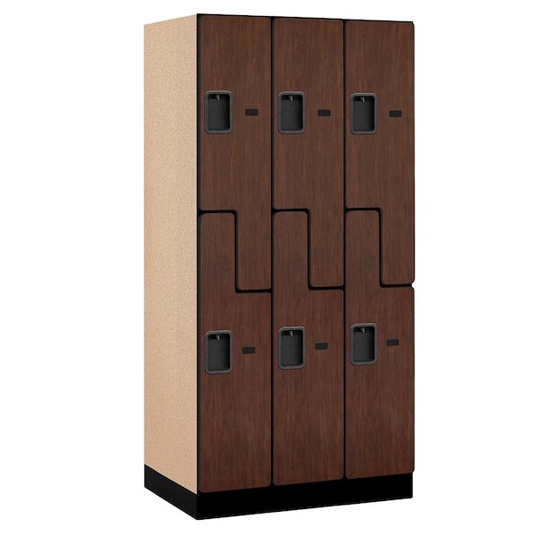 Wardrobe Locker, 36" W, 21" D, 76" H, (3) Wide, (6) Openings, Mahogany