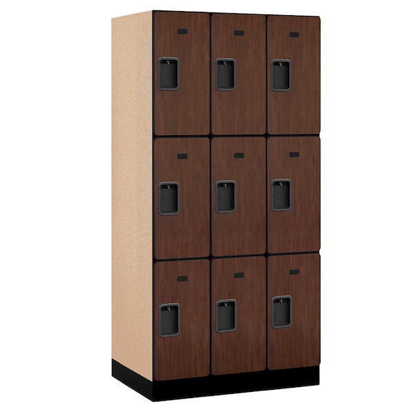 Wardrobe Locker, 36" W, 21" D, 76" H, (3) Wide, (9) Openings, Mahogany