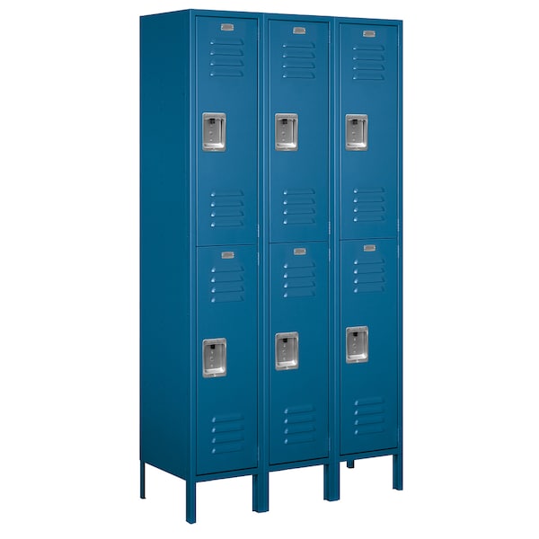 Wardrobe Locker, 45" W, 15" D, 78" H, (3) Wide, (6) Openings, Blue