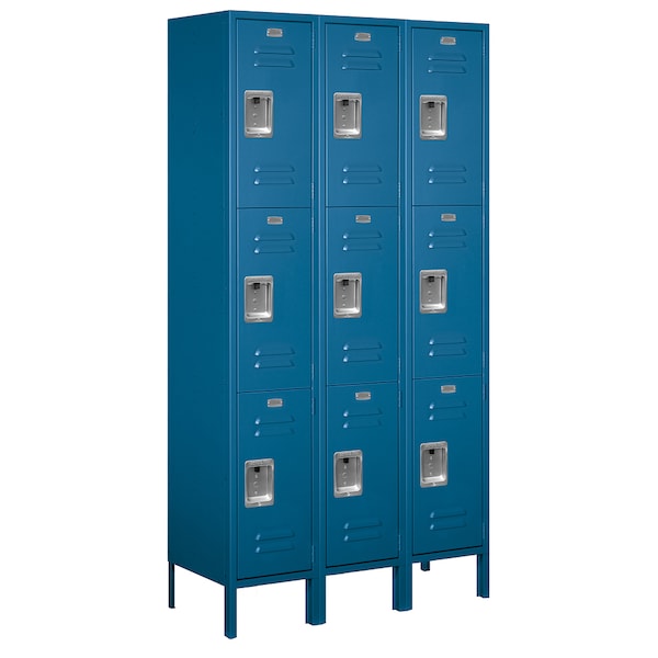 Wardrobe Locker, 45" W, 15" D, 78" H, (3) Wide, (9) Openings, Blue