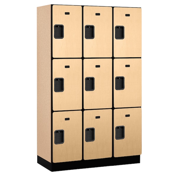 Wardrobe Locker, 45" W, 18" D, 76" H, (3) Wide, (9) Openings, Maple