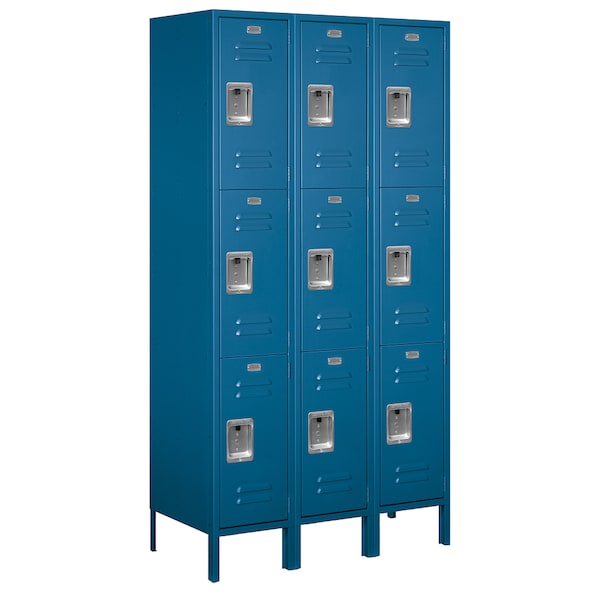 Wardrobe Locker, 45" W, 18" D, 78" H, (3) Wide, (9) Openings, Blue