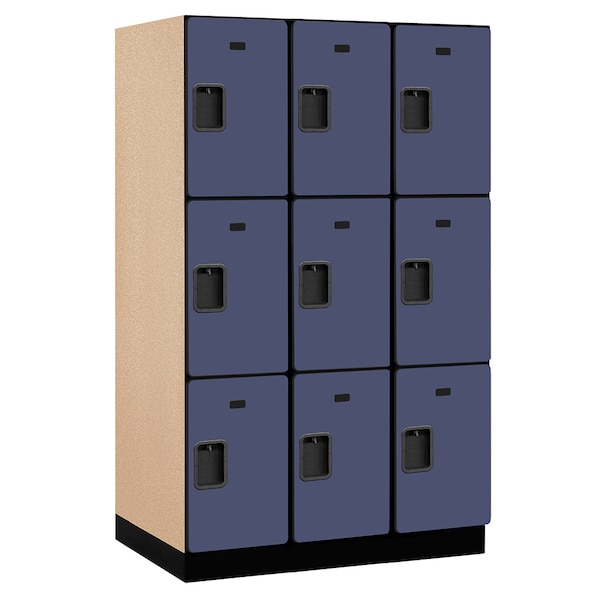 Wardrobe Locker, 45" W, 24" D, 76" H, (3) Wide, (9) Openings, Blue