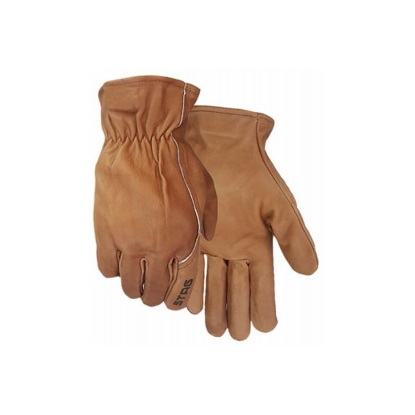 Large, Men's, Premium Grain, Chocolate Cowhide Glove, Soft Supple Leather, Water Repellent, Wing Thumb, Wrap Around Index Finger For Added Wear, Shirred Elastic Band, Rolled Cuff