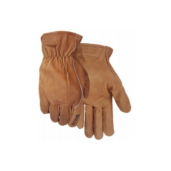 Medium, Men's, Premium Grain, Chocolate Cowhide Glove, Soft Supple Leather, Water Repellent, Wing Thumb, Wrap Around Index Finger For Added Wear, Shirred Elastic Band, Rolled Cuff