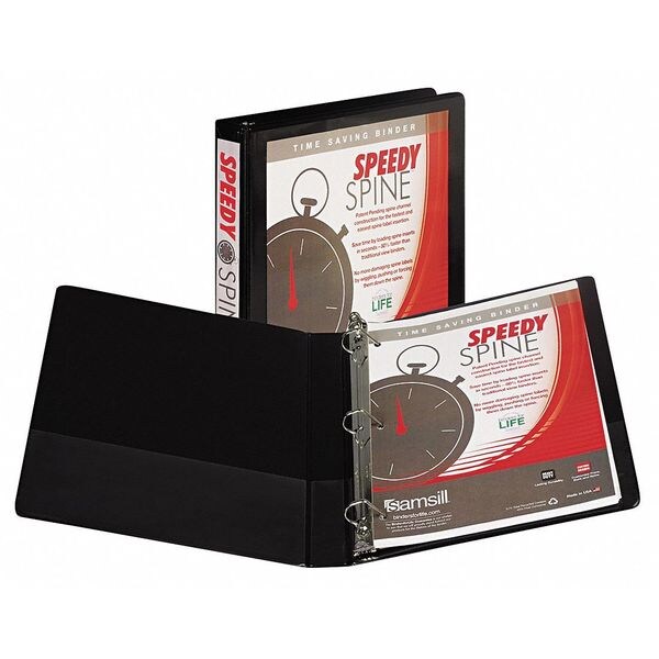 Color Family - Binders Black, 3-Ring Binder, Ring Type - Binders D-Ring, Ring Size - Binders 1 in, Cover Type - Binders Clear Sleeve, Sheet Size - Binders 8 1/2 in x 11 in, Durability - Binders Heavy Duty, Sheet Capacity - Binders 250, Features - Binders Rings Mounted on Back Cover, Basic Material - Binders Vinyl, Specific Material Vinyl Covered Chipboard, Color Black, Number of Rings 3, Item 3-Ring Binder