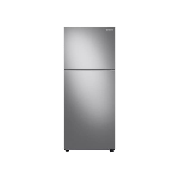 The Samsung 15.6-cu. ft. capacity Top Freezer Refrigerator with All-Around Cooling is beautifully designed with a modern look that blends seamlessly into your kitchen