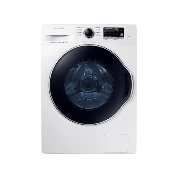 This compact Samsung 2.2-cu. ft. front load washer is ideal for apartments and tight living spaces. But, don't let its size fool you -- this washer has 12 wash cycles, a steam wash option, and Super Speed option that reduces the time of each cycle. Really tight on space The front load design lets you match the washer with a stacking dryer, freeing up valuable floor space if you stash the pair in an out-of-the-way closet or storage space. Stains arenftt created equal, so take advantage of 12 distinct wash cycles to effectively tackle everything from summertime grass stains to holiday dinner gravy spills. Pressed for time Select the Super Speed option -which dramatically reduces the time of each cycle - and finish that extra load faster than ever. Nothing ruins a relaxing night at home faster than a noisy, vibrating washing machine thumping away loudly in the background. This unit features VRT Vibration Reduction Technology to ensure a quieter, smoother operation time after time