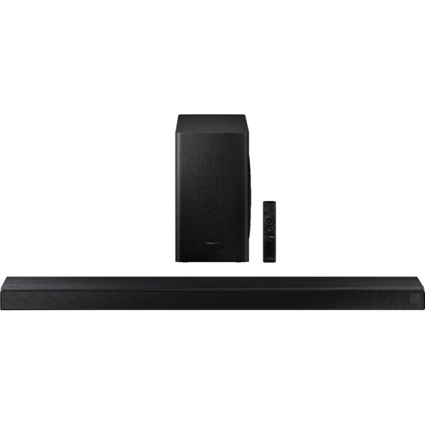 Elevate your audio experience with high-quality optimized sound. Soundbar T650 features 3D sound technology with center channel to provide clear and balanced sound for the most immersive home theater experience. Sound that wraps around you. The captivating experience of Dolby Audio and DTS Virtual:X turns your living room into a theater. Powerful 3D surround sound comes to life by recreating sound that makes you feel like you're inside the scene. Center channel for clear dialogue. Never miss a word. Experience crystal clear dialogue with a dedicated center channel speaker. Deep, rich bass. Feel the action and the beat of the music with the rich bass from the wireless subwoofer. Optimized sound for various content. The soundbar detects what you’re watching and automatically optimizes the sound setting for the best entertainment experience. Whether it’s a loud sporting event or a drama with quiet dialogue, you can count on Soundbar T650 to provide clear sound for enhanced TV viewing. A world of sound with one remote. One remote is all you need. Control key soundbar functions like power, volume, and even sound effects with the Samsung TV remote — right from your TV. Optimized gaming sound. Connect your console to the soundbar to boost your gaming experience. Optimize sound, while offering clear directional sound to gain the advantage. More sound without the wires. The Wireless Surround Kit lets you expand your soundbar to a complete surround sound system easily and without the mess of wires.