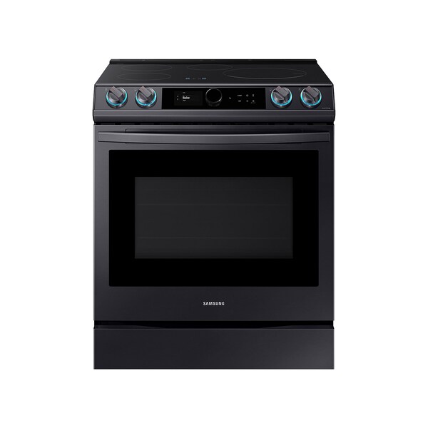 The Samsung induction range with Air Fry is the perfect range for your home kitchen. This range features Samsungfts Smart Dial that simplifies oven settings in a single dial and intuitively learns based on your cooking preferences. Our Air Fry feature provides a healthier way to prepare your favorite fried foods right in your oven, with little to no oil. Our induction cooktop gives you precise control and remains cool to the touch by only heating cookware. This range is wi-fi compatible so that you can control your range from your smart device, and voice enabled so that you can control your range with your favorite voice assistant. Blue illuminated knobs, virtual flames, gliding racks, and a fingerprint resistant finish provides the finishing touches to this range that make it perfect for your home