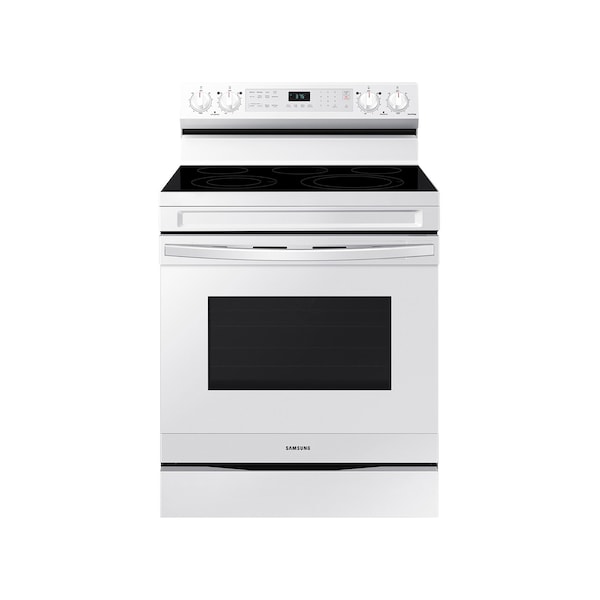 Elevate the look of your kitchen with Samsung's new freestanding electric range. This range uses upgraded technology to make cooking in your home simple and fun. Cooking with a crunch just got healthier with Air Fry. Using little to no oil, you can quickly prepare your favorite fried foods right in your oven with no preheating required. Grill your family's favorite foods and when done, conveniently store the griddle in the range storage drawer. Powerful Convection cooking saves you time by cooking food fast and more evenly. With a simple push of a button, you can proof bread, dehydrate your favorite jerky and keep meals warm in the oven with precision. And if you have a favorite recipe, conveniently save the settings in the SmartThings mobile app and send them to your oven. Preheat, adjust time and temperature of your oven, and monitor your cooktop from wherever you are with your smartphone