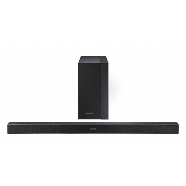 Soundbar System, Wireless, Overall Height (In.) 14-13/64, Overall Width (In.) 7-7/64, Overall Length (In.) 11-13/16, Enclosure Color Black, Enclosure Material Plastic, Tweeter Dia. (In.) 1, Woofer Dia. (In.) 3, 140 Watt (RMS), Max. Wattage 300, Weight (Lbs.) 14.2, For Use With Televisions, Includes Subwoofer, Remote Control, (2) Power Cords, AC/DC Adapter, Optical Cable, (2) Holder Screws, (2) Screws, Bracket Wall Mount L, Bracket Wall Mount R