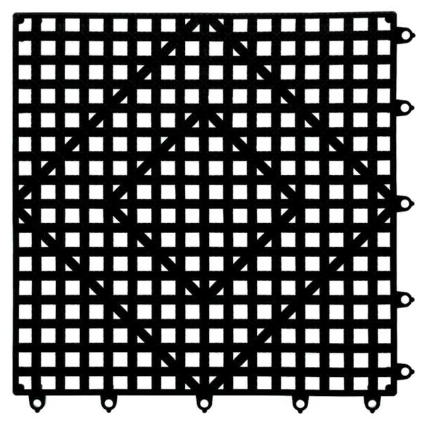 Bar Mat, Overall Length 12 in, Overall Width 12 in, Product Type Bar Mat, Color Black, Cut to Fit Yes, Interlocking Yes, Material Plastic, Bar Mat Pattern Perforated