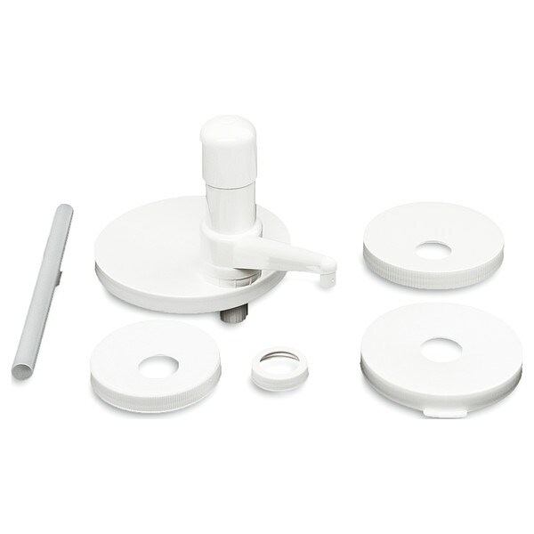 Pump and Lid Kit, Overall Height 2 3/4 in, Overall Width 15 3/4 in, Color White, Includes (2) Snap-On Caps, (3) Screw-Top Caps, Ultra Pump, Product Type Pump and Lid Kit, Material High-Impact Plastic, Overall Depth 9 in, Number of Compartments Not Applicable, NSF Certified No, Top Diameter Not Applicable