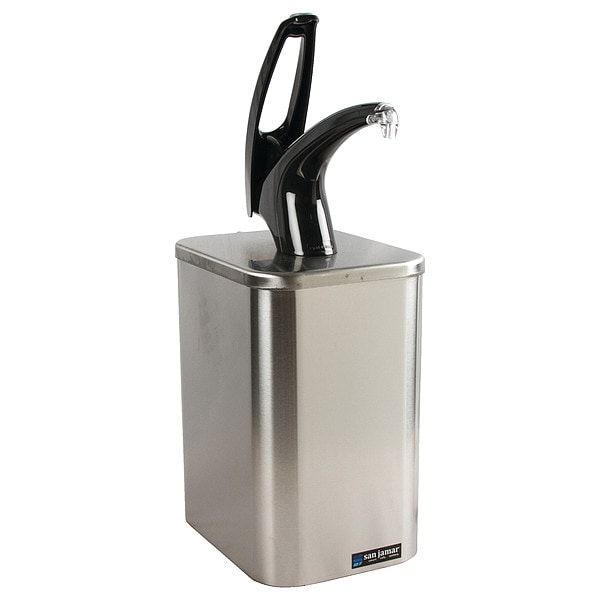 Frontline Pump, Overall Height 21 1/2 in, Overall Width 7 1/2 in, Color Black, For Use With Condiments, Sauces and Dressings with Particulates, Includes Condiment Liner, Cryovac Bag Adapter and Plug, Dip Tube, Pump Box with Tamper Resistant Lid, Product Type Universal Countertop Box System, Material Steel, Overall Depth 12 1/2 in, Number of Compartments 1, NSF Certified Yes, Top Diameter Not Applicable, Capacity 1.5 gal