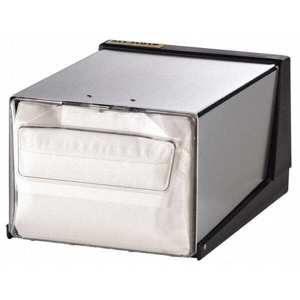 Napkin Dispenser, Dispenser Material Plastic/Steel, Napkin Dispenser Capacity 300, Napkin Fold Type Full Fold, Dispenser Color Chrome, Napkin Size 6 1/2 in x 4 1/2 in to 5 1/4 in