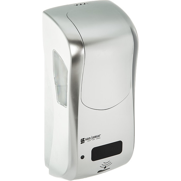 Soap/Sanitizer/Lotion Dispenser, Color Silver, Mount Type Wall, Product Type Soap/Sanitizer/Lotion Dispenser, Material Plastic, Series Rely Hybrid, Finish High Gloss, Compatible with Mfr. Model Number SDT100, Refill Size Not Applicable, Operation Mode Automatic, Power Source Battery, Batteries Included No, Overall Depth 4 in, Overall Height 12 in, Overall Width 5 1/2 in, Counter Hole Diameter Not Applicable, Maximum Countertop Thickness Not Applicable, Spout Length Not Applicable, Form Liquid