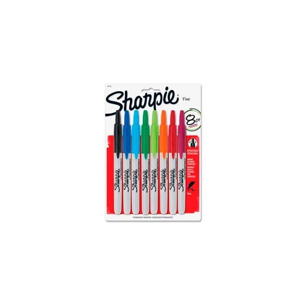 Sharpie Retractable Permanent Marker, Fine Point, Assorted Ink, 8/Set