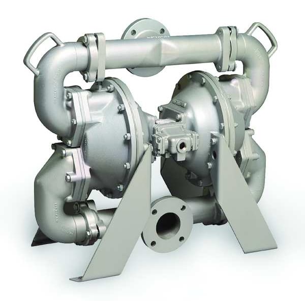 Double Diaphragm Pump, Air Consumption (Maximum) 160 scfm, Air Intake Connection Size 3/4 in, Air Intake Connection Type Flange, Check Seat Material 316 Stainless Steel, Diaphragm Material Buna-N, Feet of Head (Maximum) 231 ft, Flow Rate (Maximum) 310 gpm, Manifold Connection Single Port, Media Discharge Connection Size 3 in, Media Discharge Connection Type Flange, Media Discharge Location Bottom, Center, Media Intake Connection Size 3 in, Media Intake Connection Type Flange