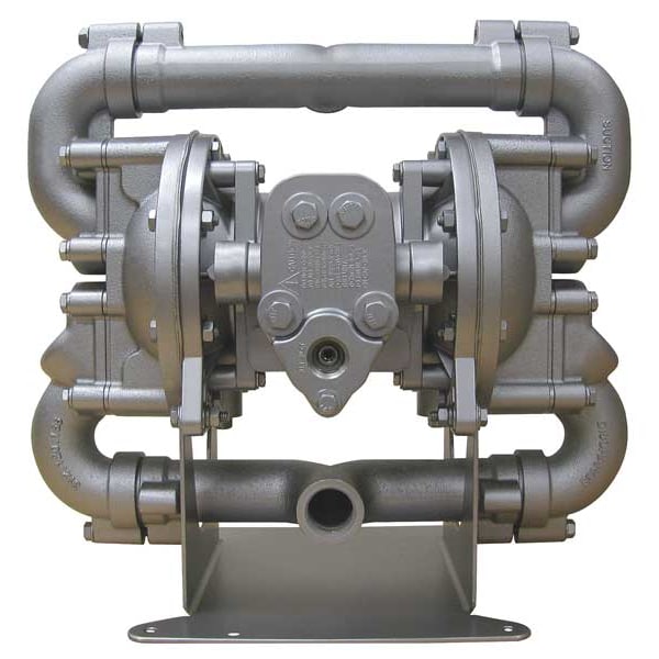 Double Diaphragm Pump, Air Consumption (Maximum) 50 scfm, Air Intake Connection Size 1/2 in, Air Intake Connection Type NPT, Check Seat Material 316 Stainless Steel, Diaphragm Material Buna-N, Feet of Head (Maximum) 289 ft, Flow Rate (Maximum) 70 gpm, Manifold Connection Single Port, Media Discharge Connection Size 1 in, Media Discharge Connection Type NPT, Media Discharge Location Bottom, Center, Media Intake Connection Size 1 in, Media Intake Connection Type NPT