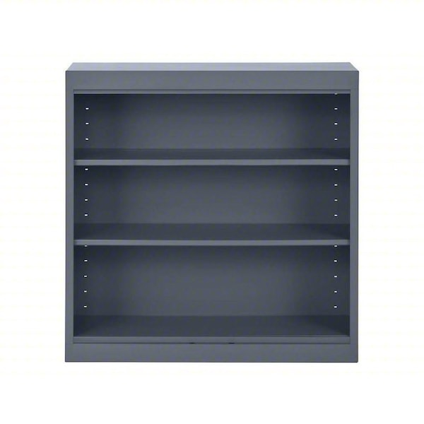 Bookcase, Product Type Bookcase, Material Steel, Number of Dividers 0, Overall Height 36 in, Overall Depth 12 in, Overall Width 36 in, Caster Type Not Applicable, Color Charcoal, Back Style Closed, Number of Shelves 3, Weight Capacity 600 lb, Shelf Adjustment Increment 1 in, Standards ANSI/BIFMA, Greenguard, Shelf Capacity 200 lb
