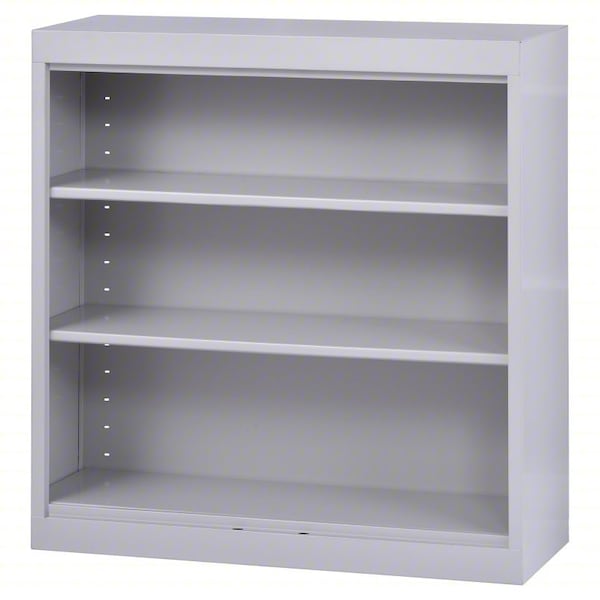 Bookcase, Product Type Bookcase, Material Steel, Number of Dividers 0, Overall Height 36 in, Overall Depth 12 in, Overall Width 36 in, Caster Type Not Applicable, Color Dove Gray, Back Style Closed, Number of Shelves 3, Weight Capacity 600 lb, Shelf Adjustment Increment 1 in, Standards ANSI/BIFMA, Greenguard, Shelf Capacity 200 lb