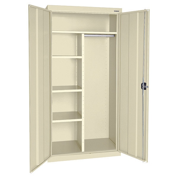 Combo Wardrobe Storage Cabinet, 72 in H, 46 in W, 24 in D, Recessed Pull, Keyed, Putty, 4 Shelves