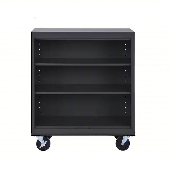 Mobile Bookcase, Product Type Mobile Bookcase, Material Steel, Number of Dividers 0, Overall Height 42 in, Overall Depth 18 in, Overall Width 36 in, Caster Type (2) Rigid, (2) Swivel with Brake, Color Black, Back Style Closed, Number of Shelves 3, Weight Capacity 600 lb, Shelf Adjustment Increment 1 in, Standards ANSI/BIFMA, Greenguard, Shelf Capacity 200 lb